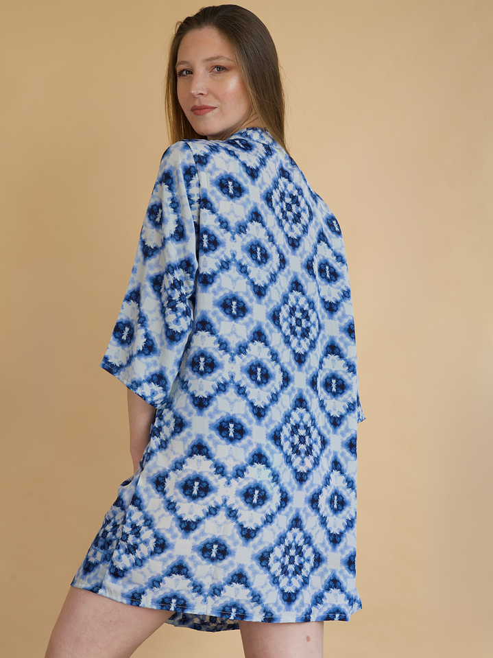 Leer másDescubre el equilibrio perfecto entre elegancia y versatilidad con nuestra salida de playa de seda. Su diseño con cuello alto y escote en V, complementado por una línea de botones en todo el frente, te permite llevarla como prefieras: abierta para un look relajado o cerrada para un estilo más sofisticado.